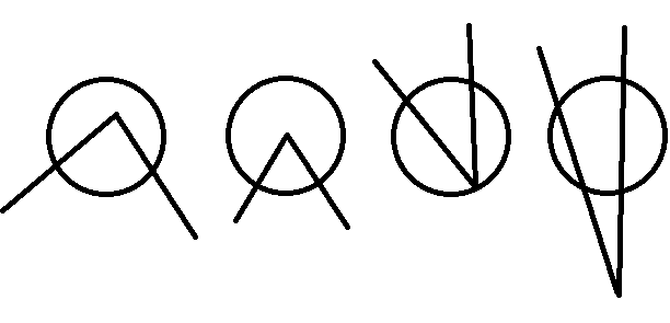 У:- Центральный угол на первом рисунке, на третьем-вписанный, а на первом и последнем просто углы и окружности.