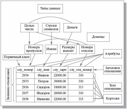 Рис. 1.3. Соотношение основных понятий реляционной модели данных