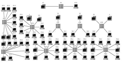 Рис. 3. Структура комунікаційної мережі рівня робочої групи (N = 4, 7, 10)