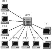 1. У системі проектування "PACKET TRACER" побудувати корпоративну комп'ютерну мережу (ККМ), відповідно до варіанта в таблиці 1. Кількість абонентів у робочій групі - 4.