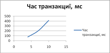 Рис.74. Залежність часу транзакції від кількості абонентів