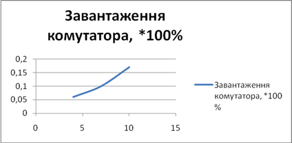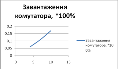 Рис. 78. Залежність завантаженості комутатора КРГ1 від кількості абонентів
