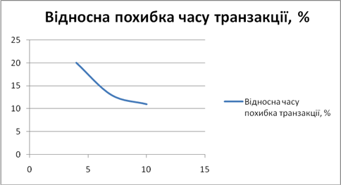 Рис. 79. Залежність відносної похибки часу транзакції від кількості абонентів