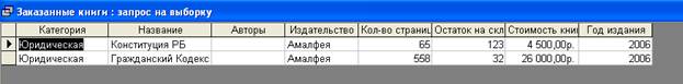 Рис. 5 Результат выполнения запроса «Заказанные книги»