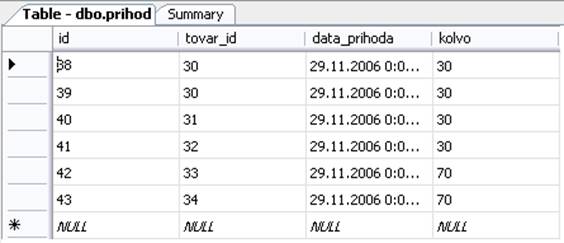 5.2.1. Таблица prihod