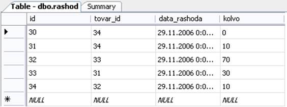 Таблица rashod состоит из 3 полей: