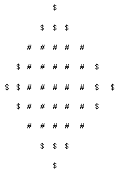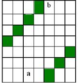 Ломаной диагональю называется диагональ, которая, дойдя до границы квадрата, продолжается параллельно первому отрезку от противоположного края (на рисунке такую диагональ образуют закрашенные клетки). [1]