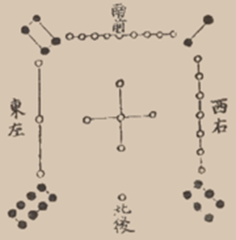 Мы не знаем страну, в которой были придуманы магические квадраты, не знаем век (и даже тысячелетие!), в котором они были впервые составлены. Известно только, что они появились задолго до эры вульгарис, и их родиной был Древний Восток. Существует китайская легенда, в которой говорится, что во времена правления императора Юй (около 2200 г. до н.э.) из вод Хуанхэ всплыла черепаха, у которой на панцире были начертаны таинственные иероглифы, эти знаки известны под названием ло-шу и равносильны магическому квадрату. Сравните рис. 1 с квадратом из первого примера п.1. [6]