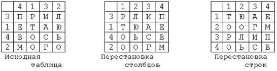 Однако двойная перестановка не отличается высокой стойкостью и сравнительно просто "взламывается" при любом размере таблицы шифрования.