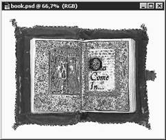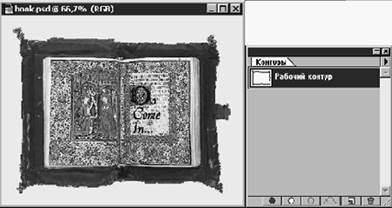 В зависимости от типа изображения данный способ может быть самым простым и быстрым. При его использовании следует просто создать выделенную область и преобразовать ее в контур. Давайте рассмотрим пример. На рис.1 показано тестовое изображение - раскрытая старинная книга на однородном фоне. Если требуется отделить изображение книги от фона, это делается методом выделения книги.