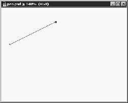 5. Чтобы нарисовать отрезок прямой линии, переместите указатель и щелкните в какой-то другой точке окна документа. Итак, вы только что создали узел типа "угловая точка", которым заканчиваются в программе Photoshop прямолинейные отрезки, как показано на рис.10.