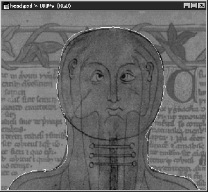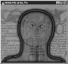Рис. 9.32. Голова персонажа, выделенная обтравочным контуром в программе PageMaker