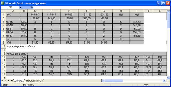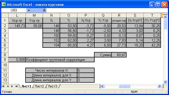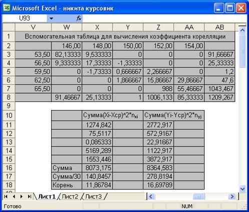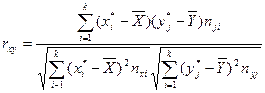 Для нахождения уравнения линии регрессии при достаточно большом числе наблюдений строят вспомогательную (корреляционную) таблицу и находят ряд математических характеристик признаков