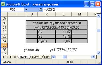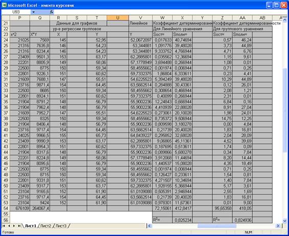 1. Анализ результатов расчетов показывает, что наилучшее уравнение регрессии получается при нахождении коэффициентов по методу наименьших квадратов. Но при очень большом количестве измерений гораздо легче составить корреляционную таблицу и вести расчёты по группированным данным, чем составлять большие циклы нахождения наименьшей суммы квадратов.