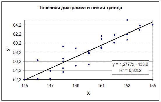 Для наглядного представления полученных экспериментальных данных строят точечную диаграмму, где положение каждой точки определяется двумя координатами – соответствующими значениями