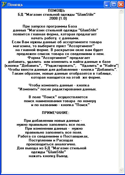 На главной форме вы можете при затруднениях работы с БД просмотреть в правом верхнем углу помощь и информацию о программе.