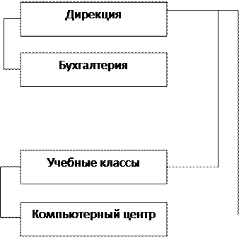 Подразделения школы соединяются в единую информационную систему при помощи управляемого коммутатора, который позволяет производить фильтрацию трафика и разграничивать доступ пользователей к ресурсам сети.