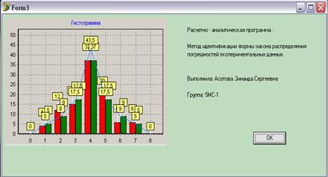 Целью данной работы является разработка программы на языке программирования Delphi для идентификации формы закона распределения погрешностей экспериментальных данных.