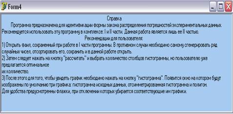 Открывая пункт меню «Справка» появляется четвертая форма (справка). На которую помещен компонент Memo1, в котором отображено как пользоваться данной программой.