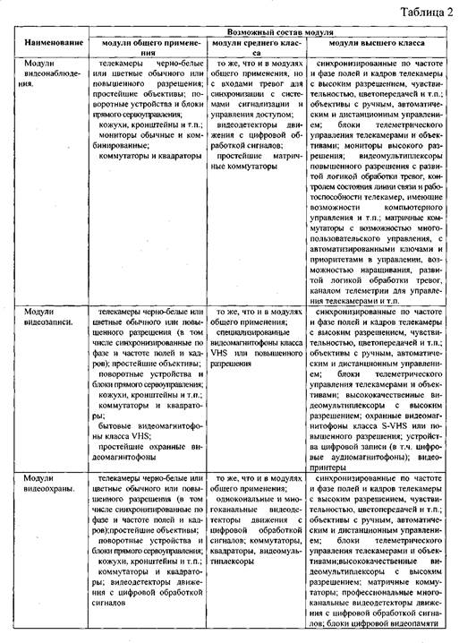 Модули высшего класса оснащаются устройствами с наилучшими качественными показателями, имеющими входы и выходы тревоги (телевизионные камеры и средства их оснащения, профессиональные видеодетекторы движения с цифровой обработкой сигналов, мониторы и специализированные видеомагнитофоны повышенного разрешения (S-VHS класса), многофункциональные мультиплексоры, матричные коммутаторы и т.п.). Они включаются в состав систем высшего и среднего класса на объектах категорий значимости А и Б.