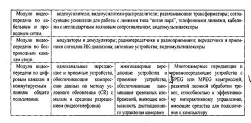 - модули видеопередачи по кабельным и проводным сетям; модули видеопередачи по беспроводным каналам связи;