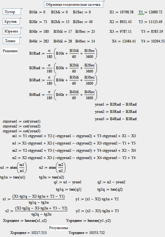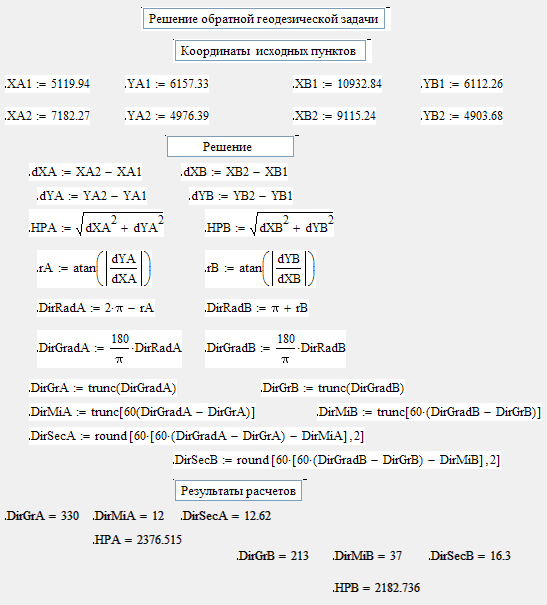 Программное обеспечение, такое как StarNet - уравнивание геодезических сетей, Mapsuite - создание инженерно-топографических планов, LEICA Geo Office - обработка геодезических измерений, SiteMaster - автоматизация обмерных работ, GeometricalGeodesy - решение геодезических задач в системе Mathematica, предназначены для решения различных геодезических задач. В данной работе представлено решение аналогичных задач с помощью языка программирования Turbo Pascal, табличного процессора Microsoft Excel 2007 и MathCad 14.