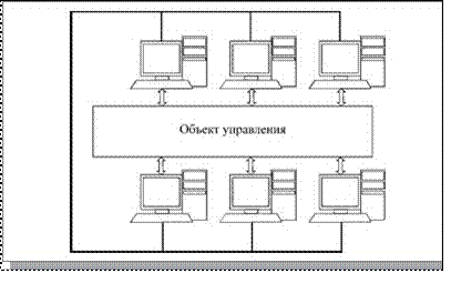 Без сети также невозможно обойтись в том случае, когда необходимо обеспечить согласованную работу нескольких компьютеров. Эта ситуация чаще всего встречается, когда эти компьютеры используются не для вычислений и работы с базами данных, а в задачах управления, измерения, контроля, там, где компьютер сопрягается с теми или иными внешними устройствами (рис. 1.4). Примерами могут служить различные производственные технологические системы, а также системы управления научными установками и комплексами. Здесь сеть позволяет синхронизировать действия компьютеров, распараллелить и соответственно ускорить процесс обработки данных, то есть сложить уже не только периферийные ресурсы, но и интеллектуальную мощь.