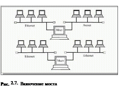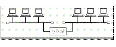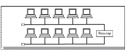 Рис. 1.10. Соединение сегментов сети типа шина с помощью репитера