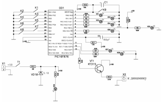 В данном курсовом проекте реализована микропроцессорная система на базе микроконтроллера - синтезатор игры пианино в пределах одной октавы. Проект основывается на микроконтроллере РIC16F876.