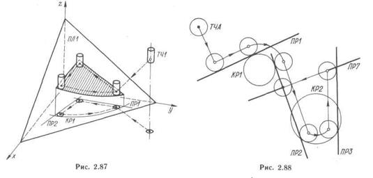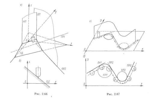 (Франция). В трех координатных САП в отличие от 2,5-координатных поверхность обрабатываемой детали может быть произвольной поверхностью второго порядка, что позволяет расширить область их применения. Типичными представителями таких САП являются MODAPT (Италия), PROMO (Франция). Многокоординатные САП в дополнение к обычным трех координатным перемещениям обеспечивают угловые перемещения вокруг одной из координатных осей. Реализация угловых перемещений производится постпроцессором и зависит от того, каким органом станка производится поворот − шпиндельной головкой или столом. Наиболее значительной из семейства многокоординатных САП является разработанная в 1961 г. в США система APT (Automatically Programmed Tools).
