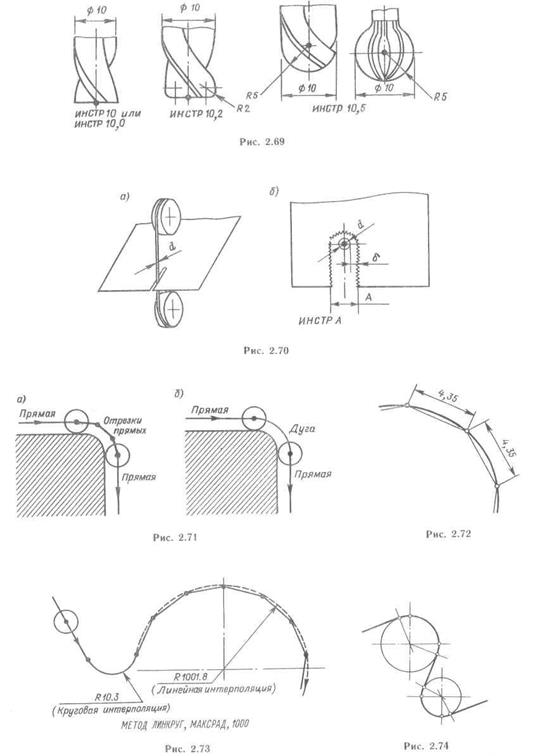 Интерполятор обрабатывает операторы движения и рассчитывает эквидистантную траекторию с учетом диаметра рабочего инструмента. Если интерполятор обнаруживает ошибку, то он выдает диагностическое сообщение и продолжает обработку от следующего оператора поточечного движения до заданного числа ошибок. В процессе вычислений интерполятор использует рабочую программу и файл контуров, подготовленные интерпретатором, а также файл сообщений об ошибках. Операторы постпроцессора не обрабатываются и передаются в выходной файл. Выходные данные интерполятора формируются в стандартном формате CLDATA.