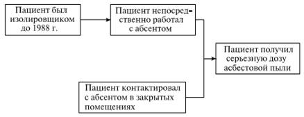 Цепочка вывода для получения заключения о накопленной дозе асбестовой пыли