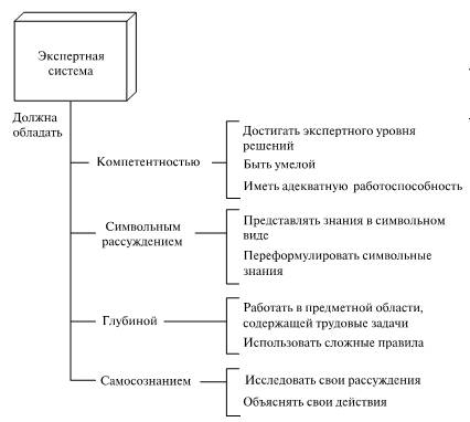 Специалисты в области ИИ имеют несколько более узкое (и более сложное) представление о том, что такое ЭС. Под экспертной системой понимается программа для ЭВМ, которая обладает свойствами, изображенными на рис. 6.1.