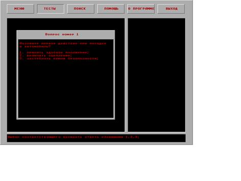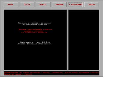 1) теория – выводит на экран теоретическую информацию из текстовых файлов по правилам дорожного движения;