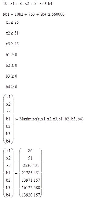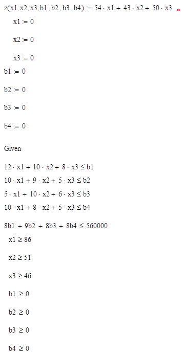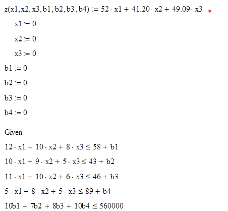 Линейное программирование с использованием пакета прикладных программ MathCad.