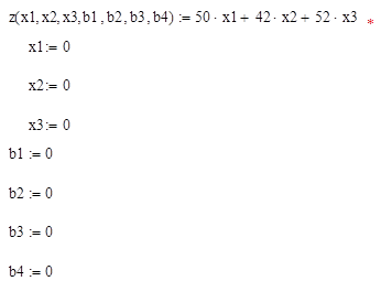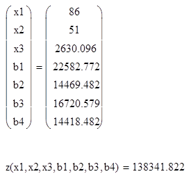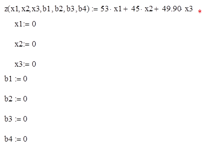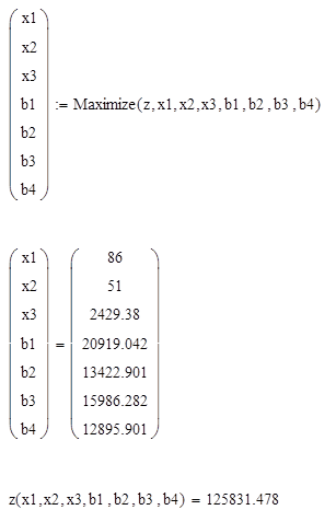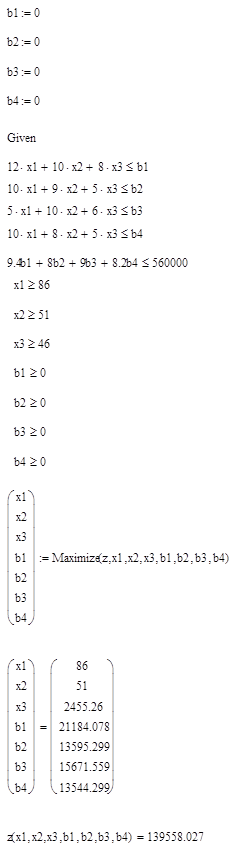 Нахождение оптимального плана производства в первый год осуществляется с помощью прикладной программы MathCad.
