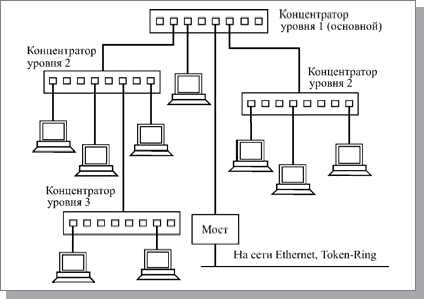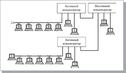 Помимо стандартной топологии шина все шире применяются топологии типа пассивная звезда и пассивное дерево.