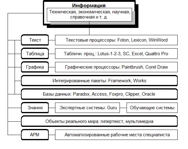• обработку текстовой информации (например, текстовые процессоры, гипертекстовые системы и т. д.);