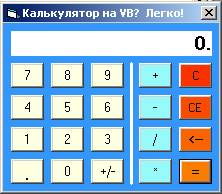 "Увидим" же программный код! При определении чего нам надо, будем исходить только из того какие элементы управления у пользователя "в руках", зачем ему нужен калькулятор и тех выкладок, которые мы с лёгкостью проделали в предыдущем шаге! А потребуется нам из того богатого ассортимента возможностей, который предоставляет VB всего-то несколько операторов, функций, свойств и событий известных объектов да понять какие управляющие переменные создать, каков их тип.