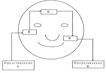 • он получает информацию, содержащуюся в представлении А, с помощью своего читающего механизма R;