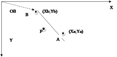 2. Смещаем преобразуемую точку P пространства на вектор –OB, получаем точку P1