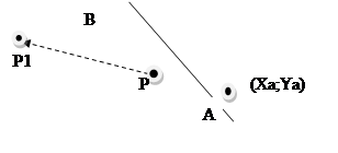 Для преобразования пространства преобразователем типа «зеркало» необходимо начать с создания линии «зеркала». Она рисуется как и обычный примитив line. Далее для зеркального отображения объектов пространства относительно этой линии используется следующий алгоритм состоящий из нескольких шагов: