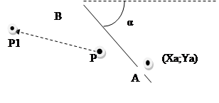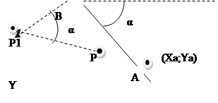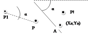 4. Поворачиваем Р вокруг Р1 на угол α, получаем точку Р2