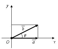 Скалярное произведение ab таким образом, выражается через длины векторов a, b и a + b т. е. систему координат можно выбрать любую, а величина скалярного произведения не изменится. Выберем систему координат xy так, чтобы начало координат совпало с началом вектора a, а сам вектор лежал на положительной полуоси оси Ox. Тогда координатами вектора a будут числа |a| и 0, а координатами вектора a – |a| cos φ и |a| sin φ . По определению