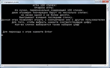 Что касается практической части, то мною был разработан программный продукт «Игра «100 спичек».