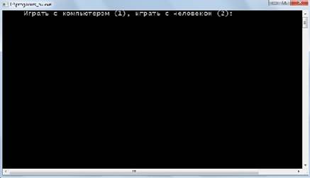 После чего начнется сама игра. Если пользователь нажал (1), тогда он будет играть с компьютером. Сначала право хода будет предоставлено самому игроку.