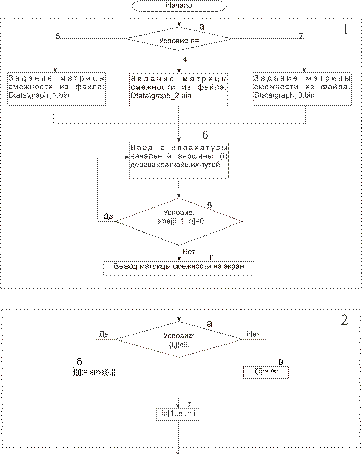 а) Пользователь вводит число вершин в графе. И в зависимости какое число выбрал пользователь, задается матрица смежности из соответствующего файла.