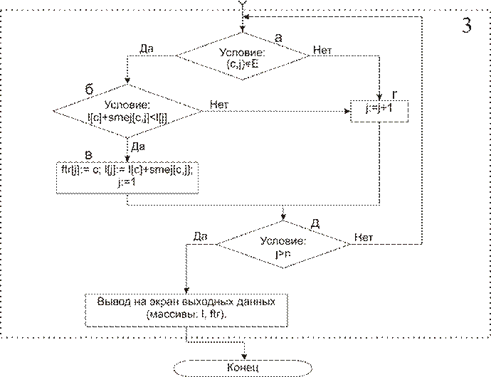 а) Если существует дуга (i,j), то выполняется пункт б, иначе пункт в.