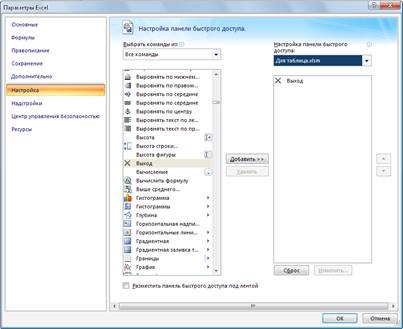 Файл-> Параметры Excel -> Настройка. В поле «настройка пане быстрого доступа » укажем для «Таблица».