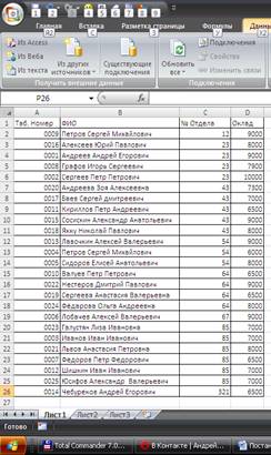 . Далее заходим на вкладку Данные -> сортировка- > Сортировать по . указываем поле ФИО, Порядок- От А до Я